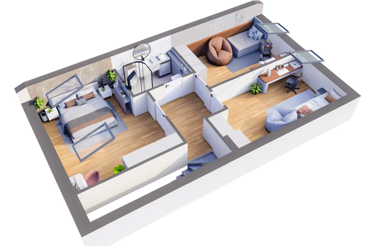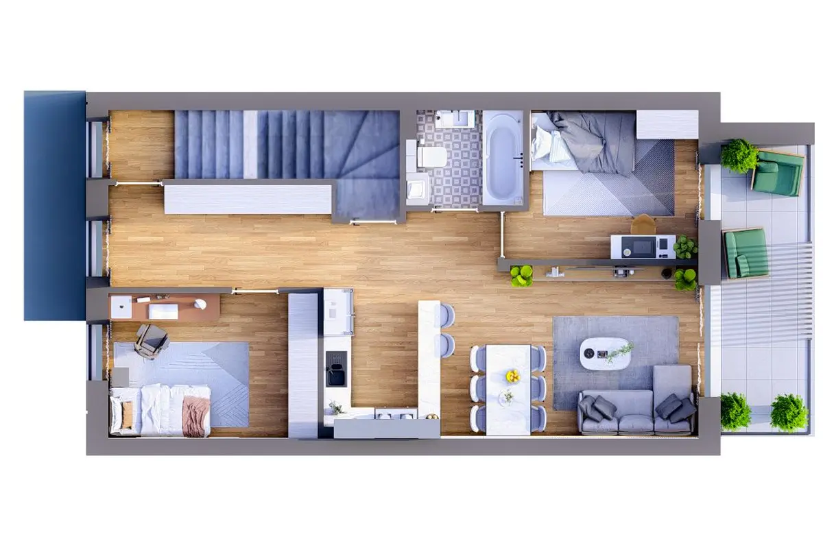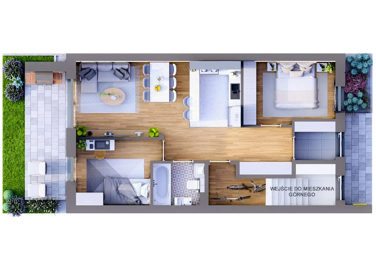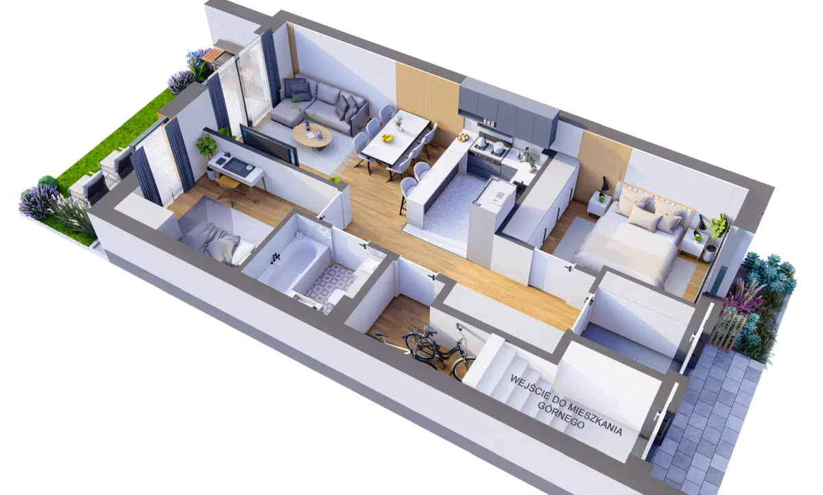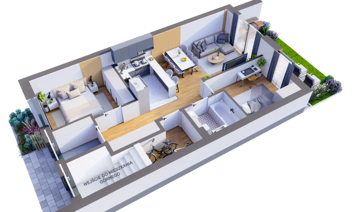 Każde mieszkanie posiada przypisane dwa miejsca parkingowe, dzięki czemu nie musisz martwić się o wolną przestrzeń.